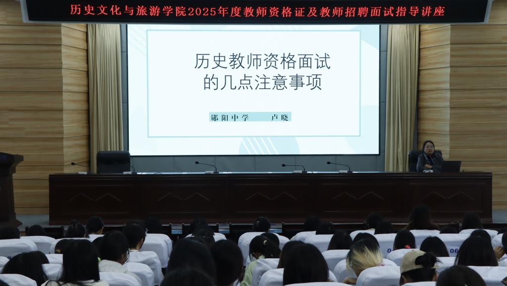 为助力学生提升教师资格考试及教师招聘面试能力,明晰备考方向,增强求职竞争力,11月23日下午,威廉希尔足球官网历史学专业于崇文楼C101报告厅成功举办了2025年度教师资格证及教师招聘面试指导讲座。本次讲座特邀十堰市郧阳中学资深教师卢晓担任主讲,不仅吸引了历史学专业学生踊跃参与,同时也得到了学院旅游管理、行政管理等专业同学的广泛关注和积极参加。讲座由历史学教研室主任孙浩老师主持。