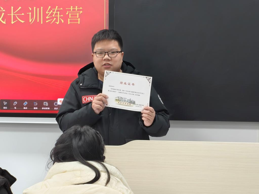 最后陈吉冲老师送上祝福,希望大家学以致用、锤炼本领,为学院发展贡献力量。随后,他为全体25级学生骨干逐一颁发结营证书。