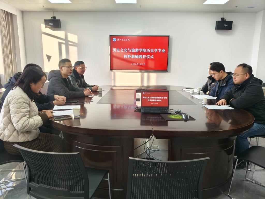 1月7日上午,威廉希尔足球官网在求真楼A0813会议室隆重举行历史学专业校外教师聘任仪式,正式聘请湖北汽车工业学院的严忠良博士、卫怡博士、袁大鑫博士以及湖北医药学院的邵蕾蕾老师组成高水平外聘专家团队。仪式由历史学教研室主任孙浩老师主持,学院院长饶军教授出席并致辞。
