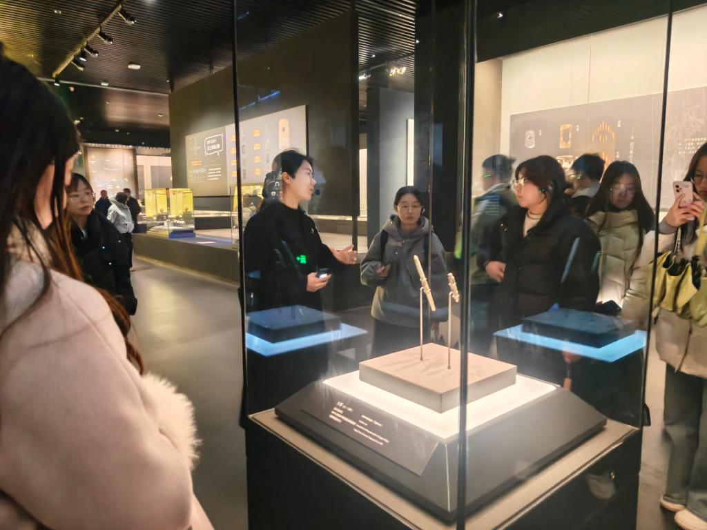襄阳市博物馆藏品丰富、底蕴深厚,是开展文博专业实践教学的优质第二课堂。在博物馆资深讲解员的引导下,师生有序参观各展厅。从史前时期的石器陶器、先秦两汉时期的青铜器玉器,到三国早期的青铜马、唐宋元明清时期的瓷器书画,一件件文物静静诉说着襄阳数千年的历史变迁与文脉传承。讲解员生动讲述文物背后的历史故事、工艺技术、文化内涵与考古历程,同学们认真聆听、仔细观摩,积极与讲解员及带队老师互动探讨。沉浸式、互动式的现场学习,让博物馆学、文物鉴定、陈列设计等理论知识变得直观可感,大家不仅清晰把握了襄阳地区历史发展脉络,更真切体会到博物馆在陈列布展、讲解服务、文物保护等方面的专业运作,深刻认识到博物馆作为连接古今、联通研究与公众的重要桥梁作用。